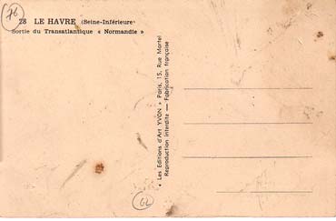 | REF. EDITEUR : 28 | REF. SITE : YVONC 1-1 PSB | COMMENTAIRE | "LE HAVRE (SEINE INFERIEURE) - SORTIE DU TRANSATLANTIQUE "NORMANDIE" |