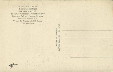 | REF. EDITEUR : 9-38 | REF. SITE : CIGG 6-9.38-1 PSB | COMMENTAIRE | "Normandie entrant au port" |