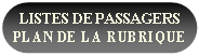 - Au centre de la page, le titre "LISTE DES PASSAGERS" sur trois lignes en lettrage italique type "Arial" de 10 mm. de hauteur pour les mots "LISTE" et "PASSAGERS" et 3 mm. pour le mot "des". - Trait fantaisie de 32 mm. à environ 55 mm. du bord inférieur de la page.